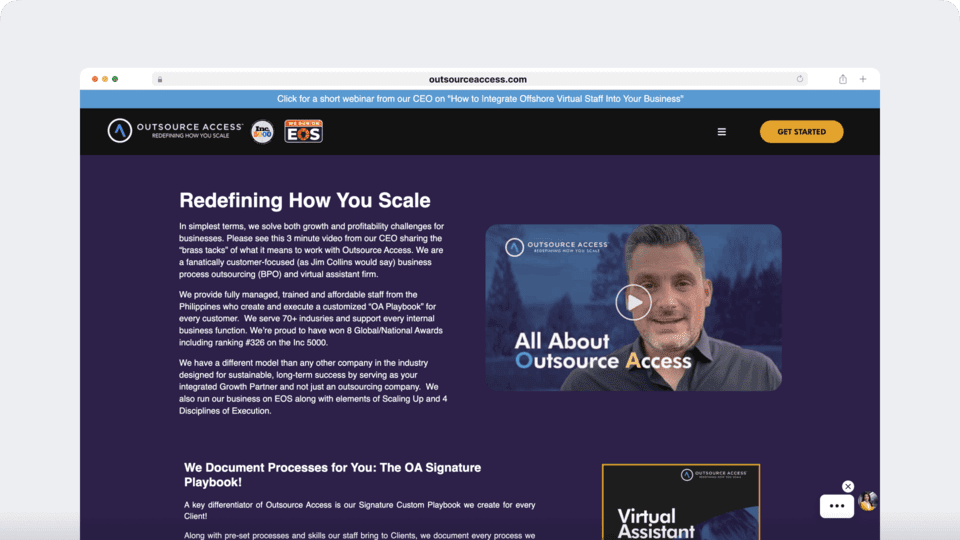 Outsource Access is the only outsourcing company selected for Inc Magazine’s “Best in Business” award for rapid growth.