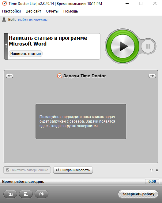 В течение месяца фрилансер активирует программу тогда, когда работает и предоставляет данные Тайм Доктора заказчику. Для наглядности поставим себе простенькую задачу в программе. Так как я пишу статью, то почему бы и не поставить себе именно эту задачу. Открываем Тайм Доктор и создаем задачу.