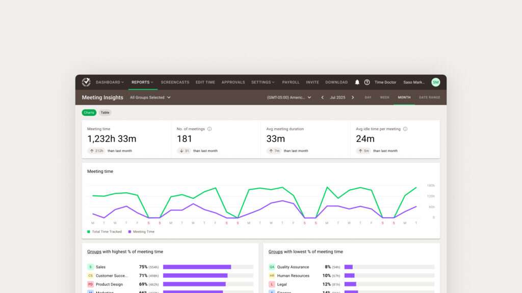 - Measure meeting quality by tracking average duration, idle minutes per meeting, and idle time during meetings versus regular work hours.