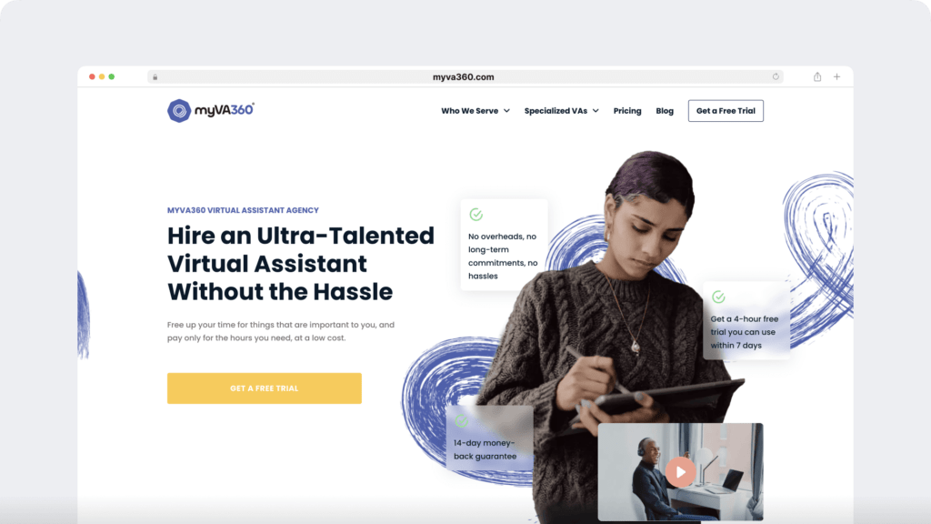 Plans from MYVA360 are flexible, meaning it’s easy to find one that suits your needs. Packages start at $419 a month for 15 hours and the most comprehensive is $1,380 a month for 60 hours. All allow you to roll over your unused hours at the end of the month. In addition, you have the option to pay as you go for $28 an hour. Best of all, no matter what plan you want, a 4-hour free trial you can use within 7 days of signing up.