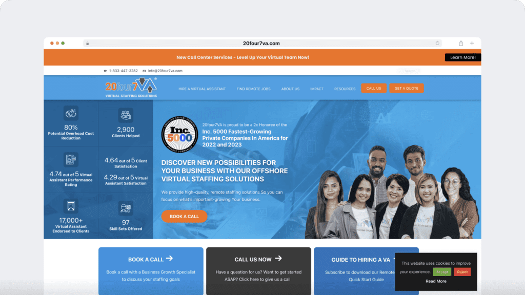 - They have English speaking VA’s, as well as Bilingual staff from the Philippines and Costa Rica.