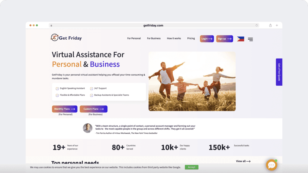- They provide a dedicated account manager who monitors your VA’s projects & time tracking.